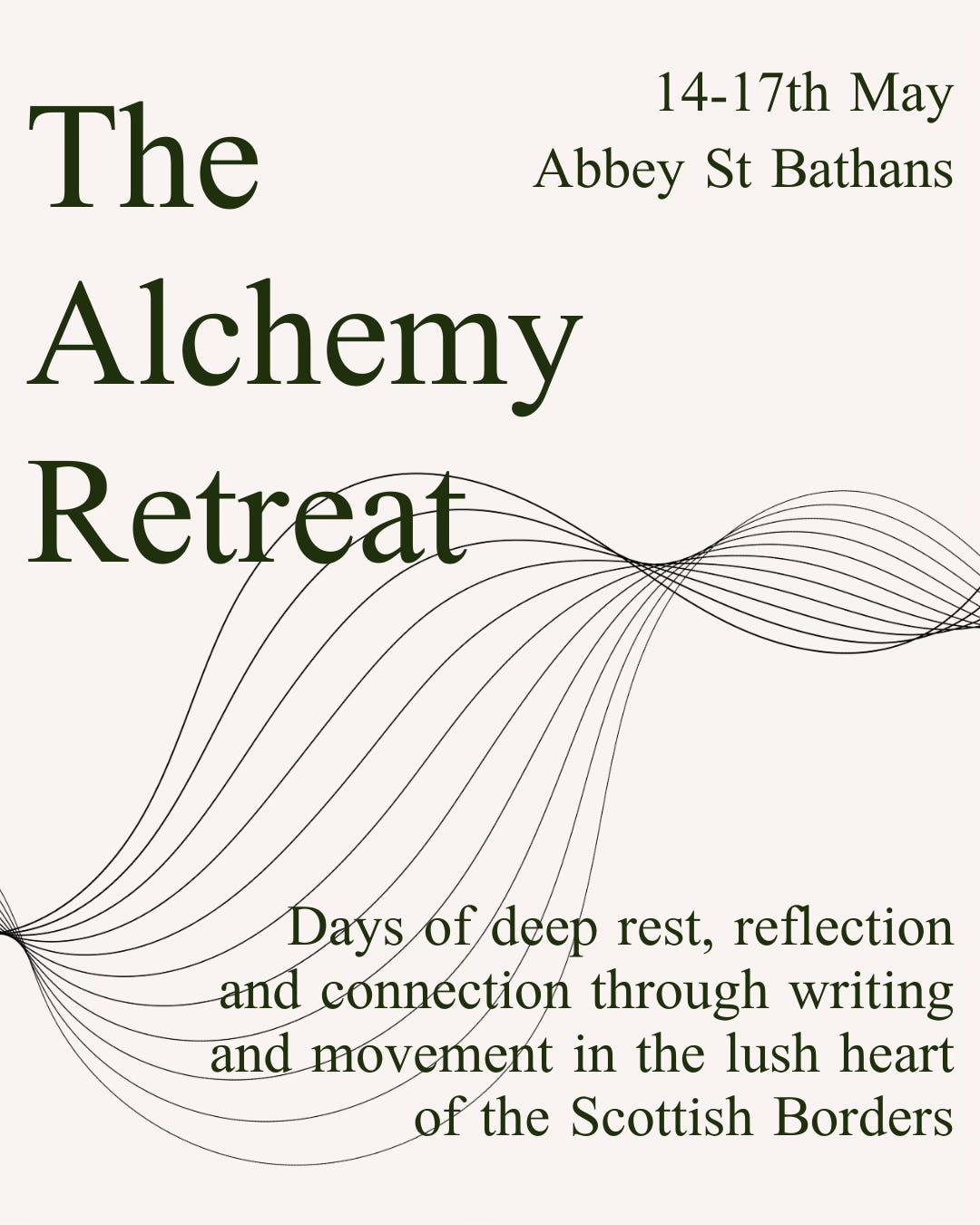 The Alchemy Retreat - therapeutic writing & movement in the Scottish Borders - 14-17th May 2026. There are now 4 spaces left on this experience of deep rest, reflection and connection at a beautiful time of year. Take a look at the details here.